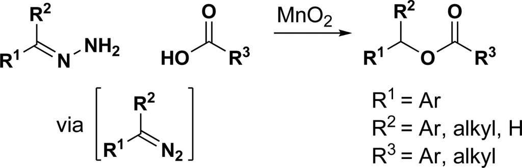 Berry, M. T.; Casterjon, D.; Hein, J. E*.: “Oxidative esterification of aldehydes using mesoionic 1,2,3-triazolyl carbene organocatalysts.” Org. Lett., 2014, 16(14), p. 3676 – 3679.