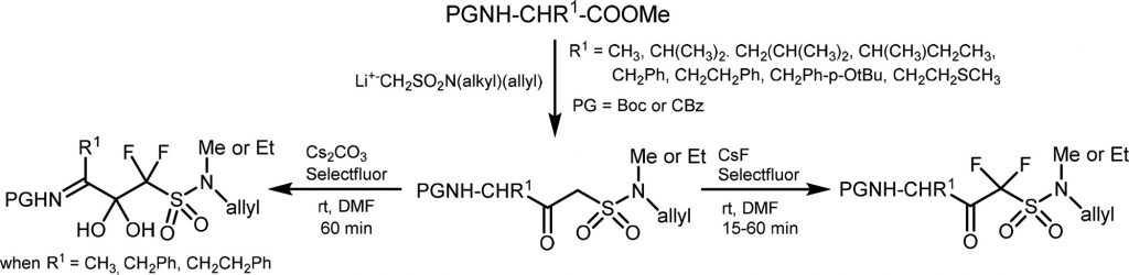 Soley, J.; Chiu, E.; Chung, R.; Green, J.; Hein, J. E.; Taylor, S. D.* “Synthesis of β-ketosulfonamides derived from amino acids and their conversion to β-keto-α,α-difluorosulfonamides via electrophilic fluorination.” J. Org. Chem., 2017, 82(20), p. 11157 – 11165.