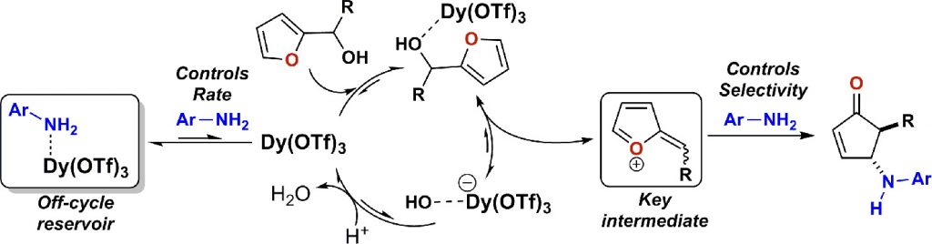 Veits, G, K; Wenz, D. R.; Palmer, L. I.; Hein, J. E.; Read de Alaniz, J.*: “Cascade rearrangement of furylcarbinols with hydroxylamines: Practical access to densely functionalized cyclopentane derivatives.” Org. Biomol. Chem., 2015, 13(31), p. 8465 – 8469.